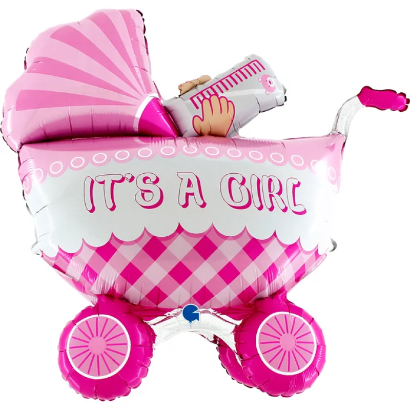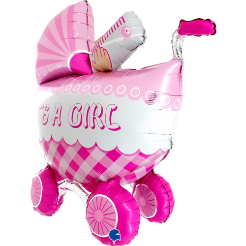 Шар (33''/84 см) Фигура 3D, Коляска для девочки, Розовый, 1 шт., L73061