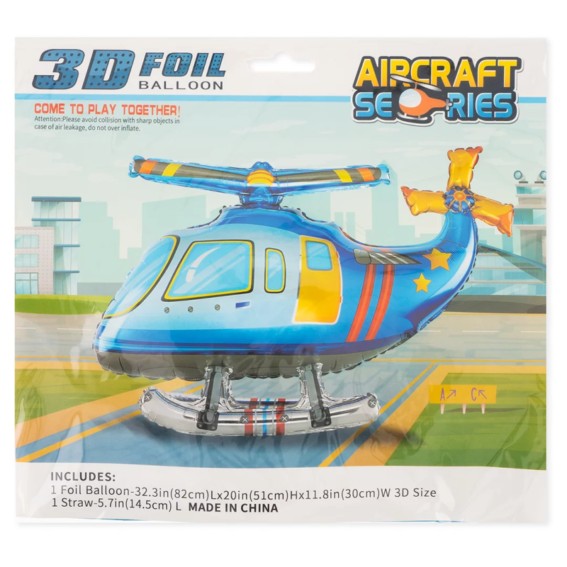 Шар (33''/84 см) Фигура 3D, Вертолет, Синий, 1 шт. в уп., 26027