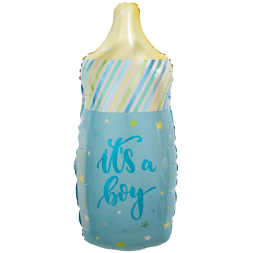 Шар (33''/84 см) Фигура, Бутылочка для малыша (звездочки), Голубой, 1 шт., R581V