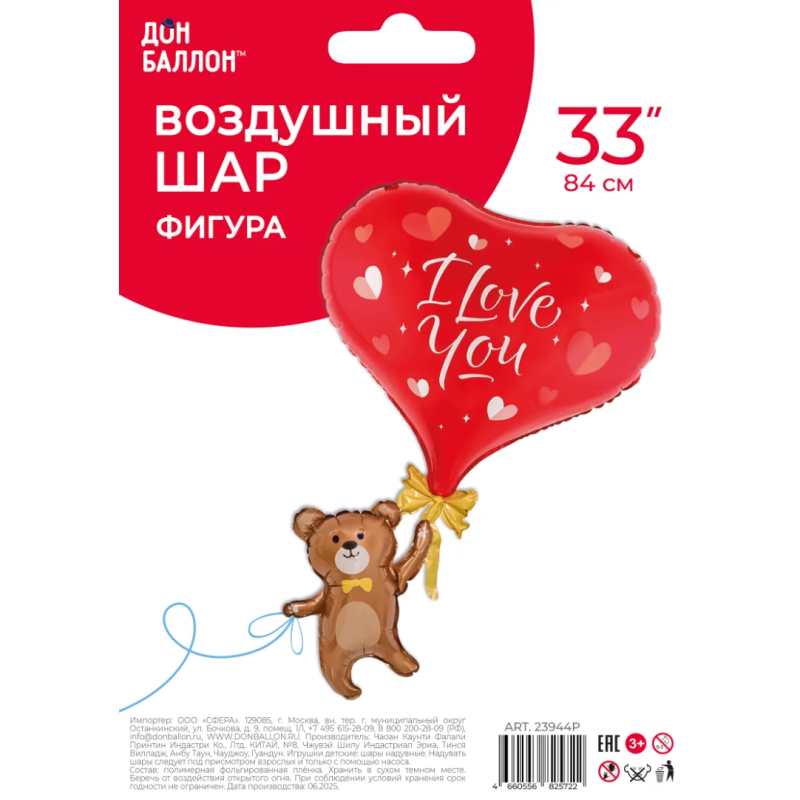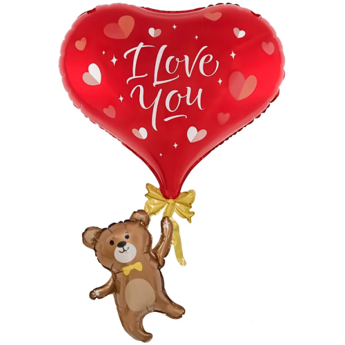 Шар (33''/84 см) Фигура, Мишка с сердцем, 1 шт. в уп., 23944P