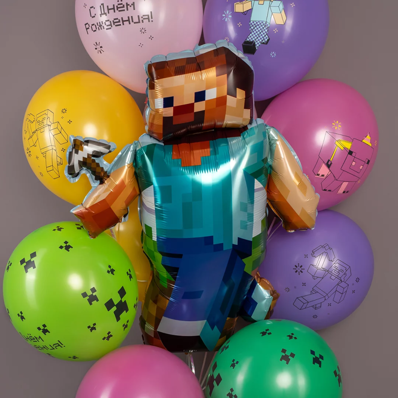 Шар (33''/84 см) Фигура, Пиксельный герой, 1 шт. в уп., 23486P