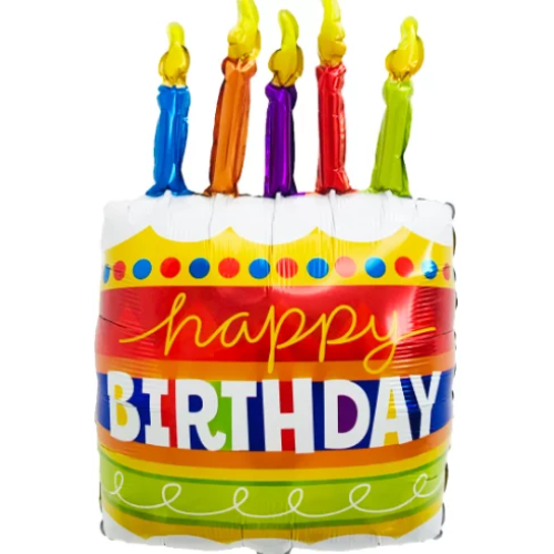 Шар (33''/84 см) Фигура, Торт на День Рождения, Яркие свечи, 1 шт., 19654