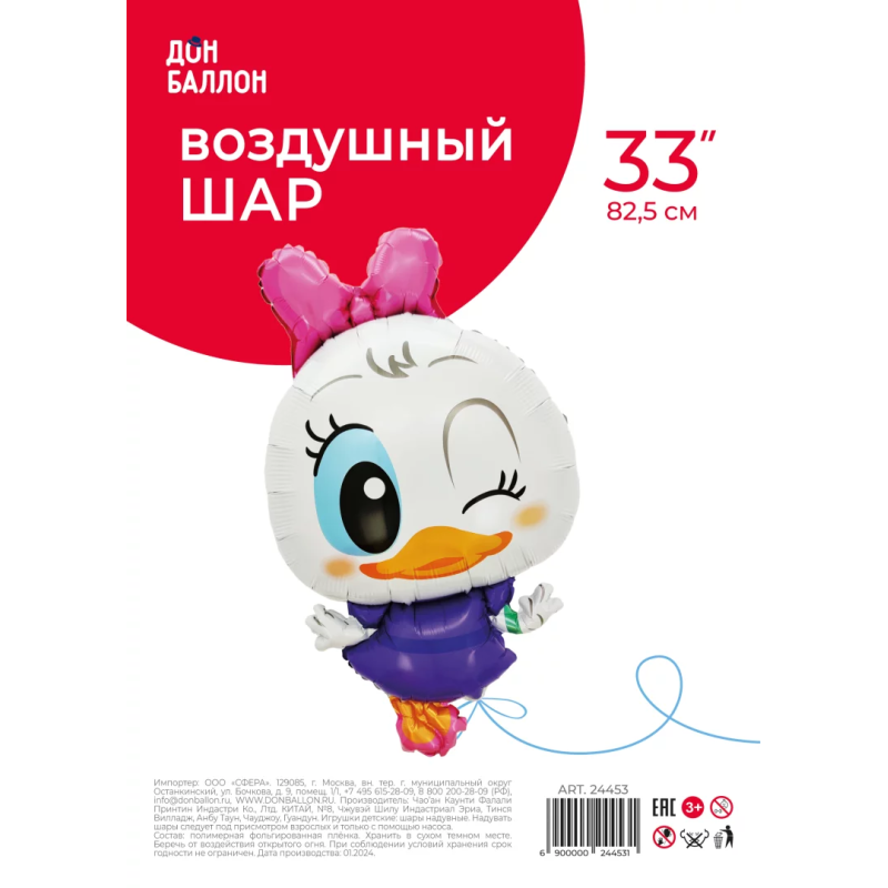 Шар (33''/84 см) Фигура, Утенок Дейзи, 1 шт. в уп., 24453