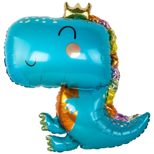 Шар (34''/86 см) Фигура, Динозаврик в короне, Голубой, 1 шт., 19904