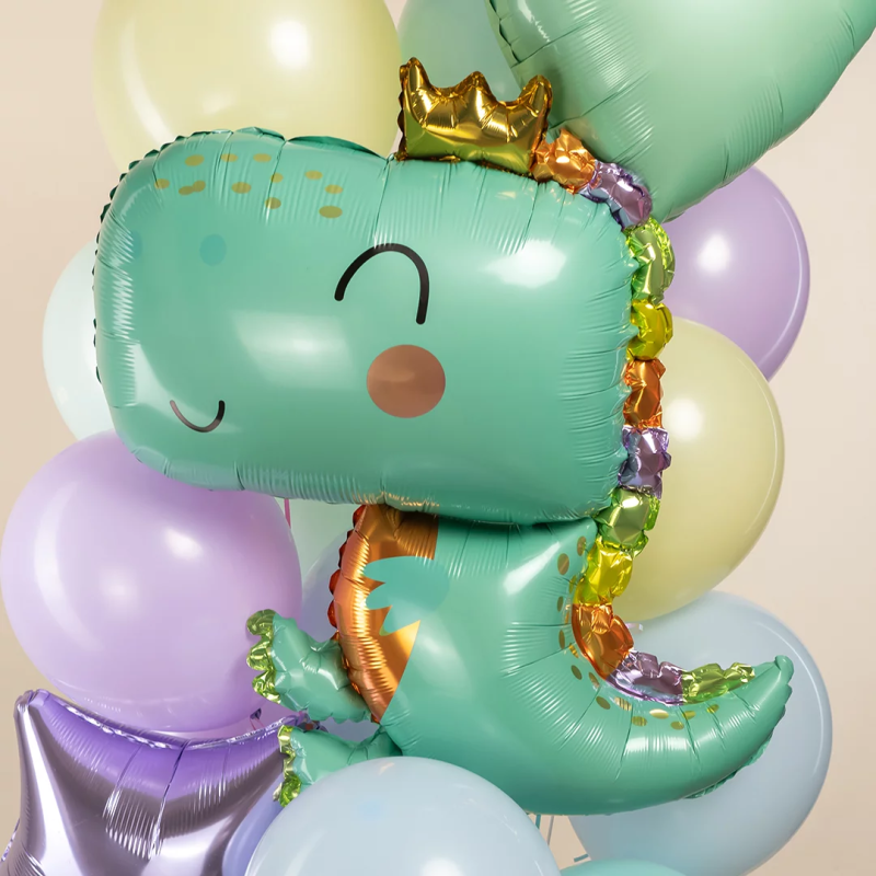 Шар (34''/86 см) Фигура, Динозаврик в короне, Светло-зеленый, 1 шт., 15571