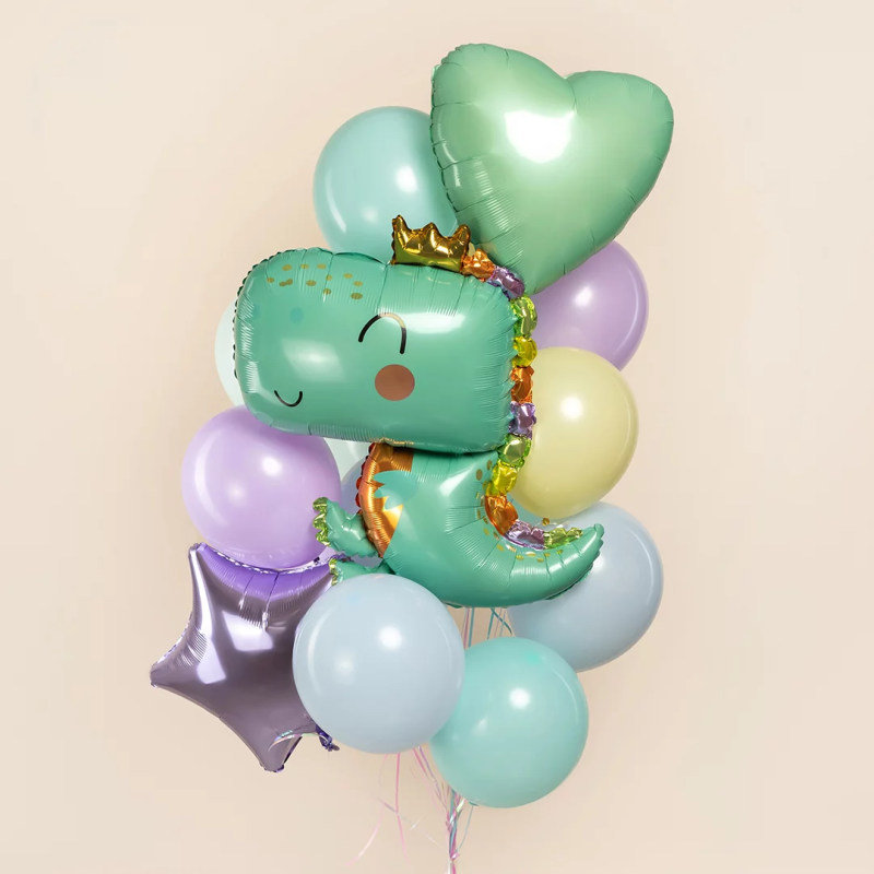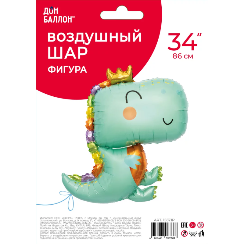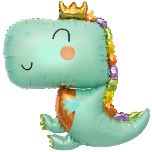 Шар (34''/86 см) Фигура, Динозаврик в короне, Светло-зеленый, 1 шт. в уп., 15571P
