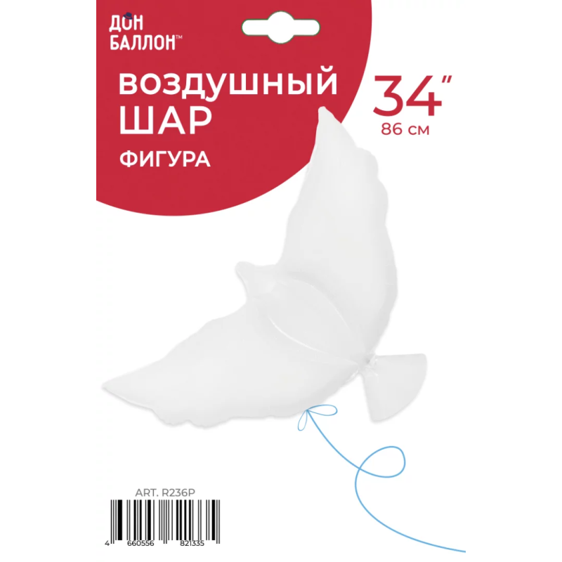 Шар (34''/86 см) Фигура, Голубь, Белый, 1 шт. в уп., R236P