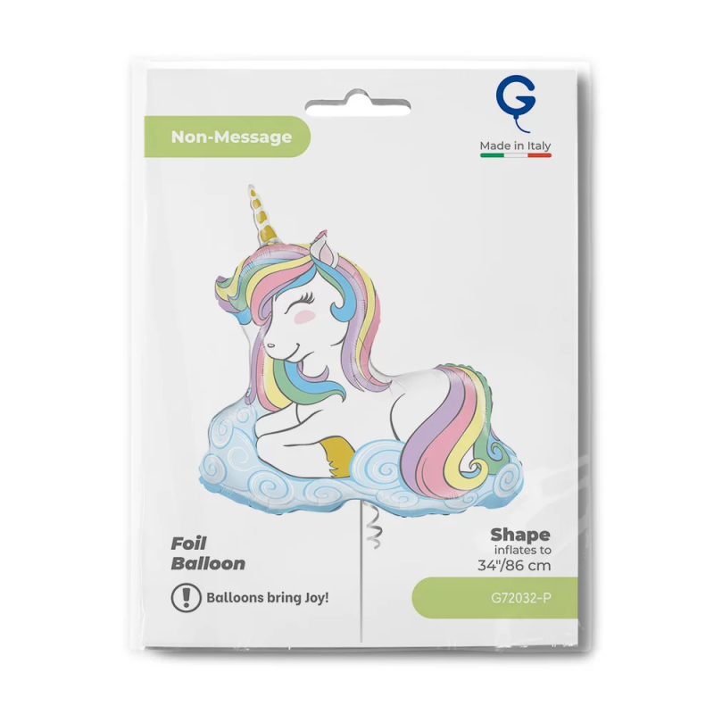 Шар (34''/86 см) Фигура, Нежный единорог на облаках, 1 шт. в уп., G72032-P