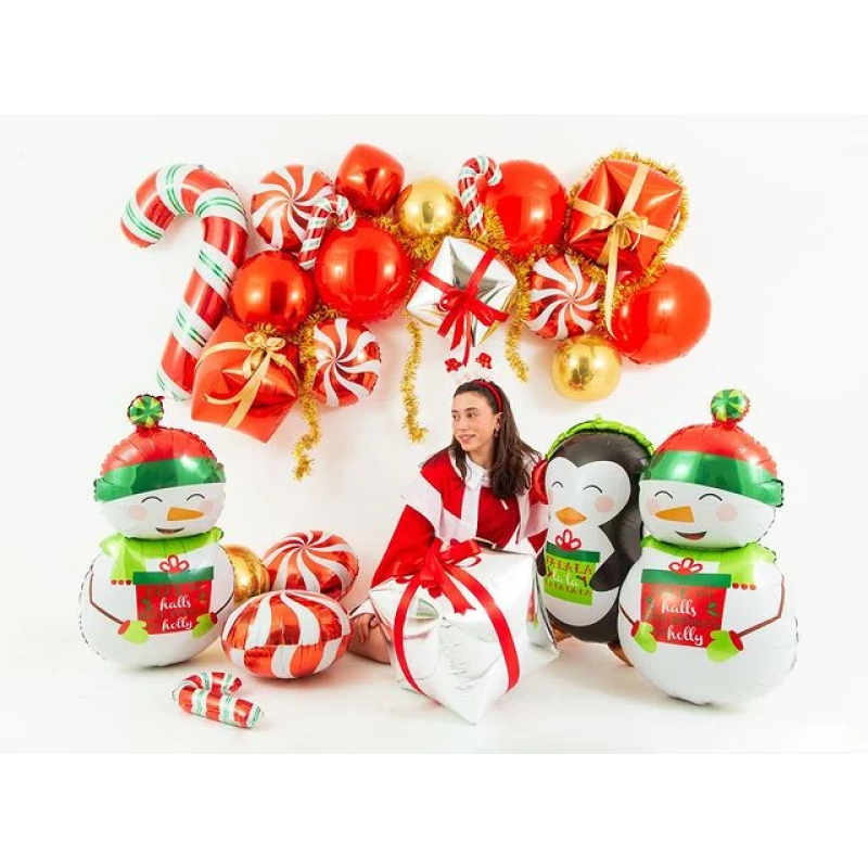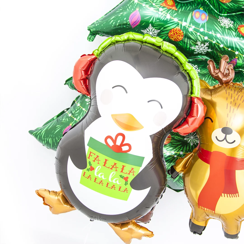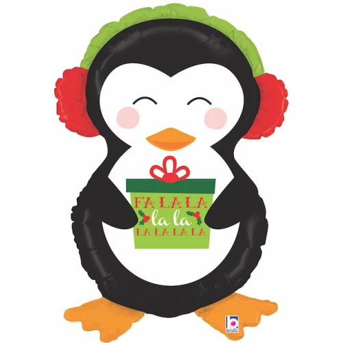 Шар (34''/86 см) Фигура, Пингвин с новогодним подарком, 1 шт., 35387