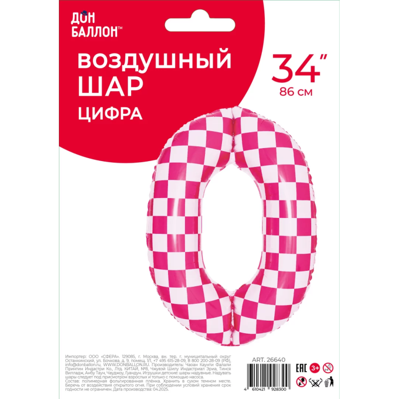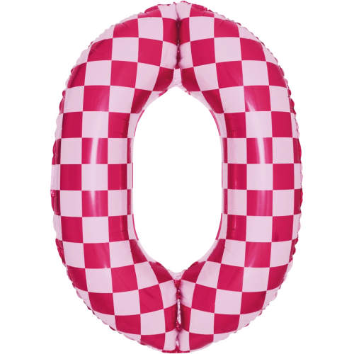 Шар (34''/86 см) Цифра, 0 Клеточки, Розовый/Фуше, 1 шт. в уп., 26640