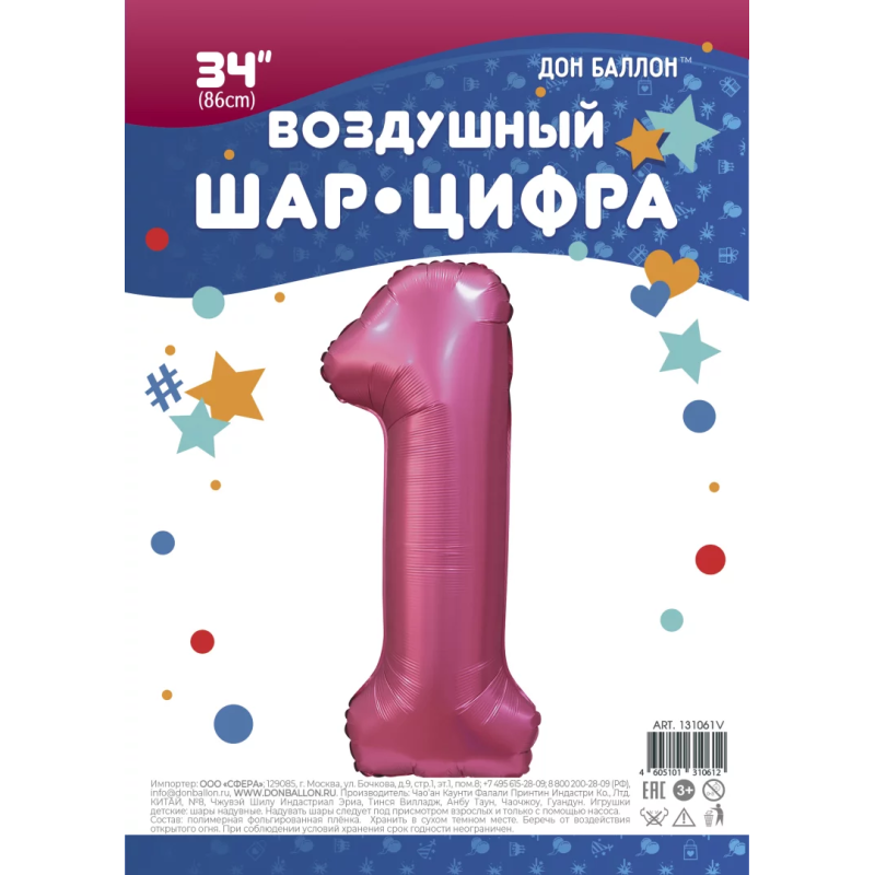 | Линейка | Falali Шар (40''/102 см) Цифра, Бордовый |