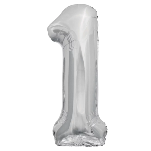 Шар (34''/86 см) Цифра, 1 ЭКО, Серебро, 1 шт. в уп., 21541