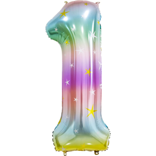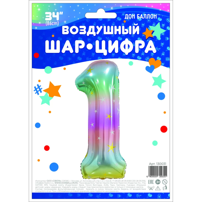 Шар (34''/86 см) Цифра, 1 Радужные искры, Градиент, 1 шт. в уп., 130031