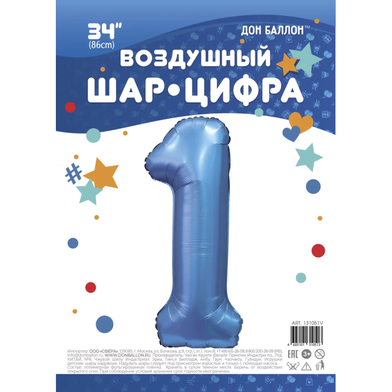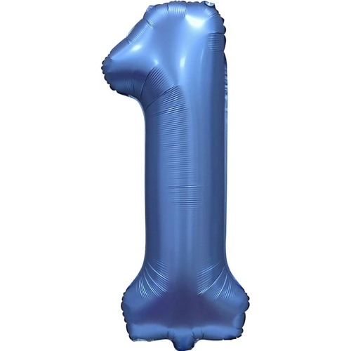 Шар (34''/86 см) Цифра, 1, Синий, Сатин, 1 шт. в уп., 131051V