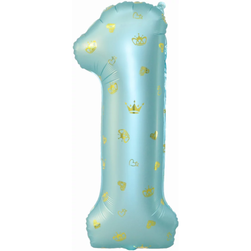 Шар (34''/86 см) Цифра, 1 Золотые короны, Голубой, 1 шт. в уп., 131291