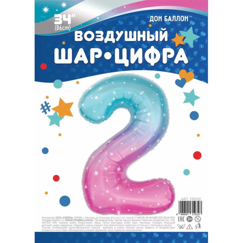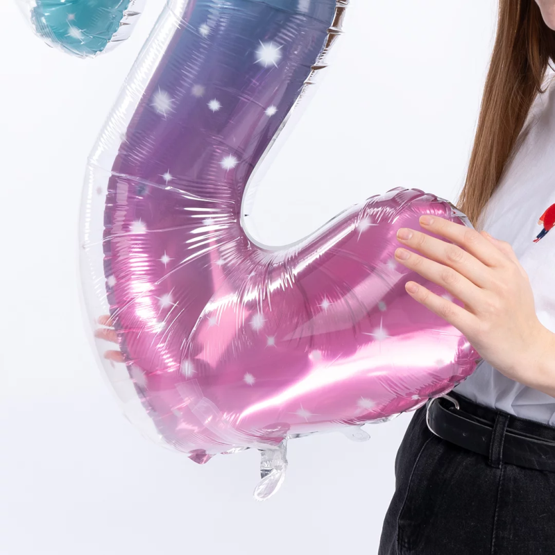 Шар (34''/86 см) Цифра, 2 Нежные искры, Розовый, Градиент, 1 шт. в уп., 131032
