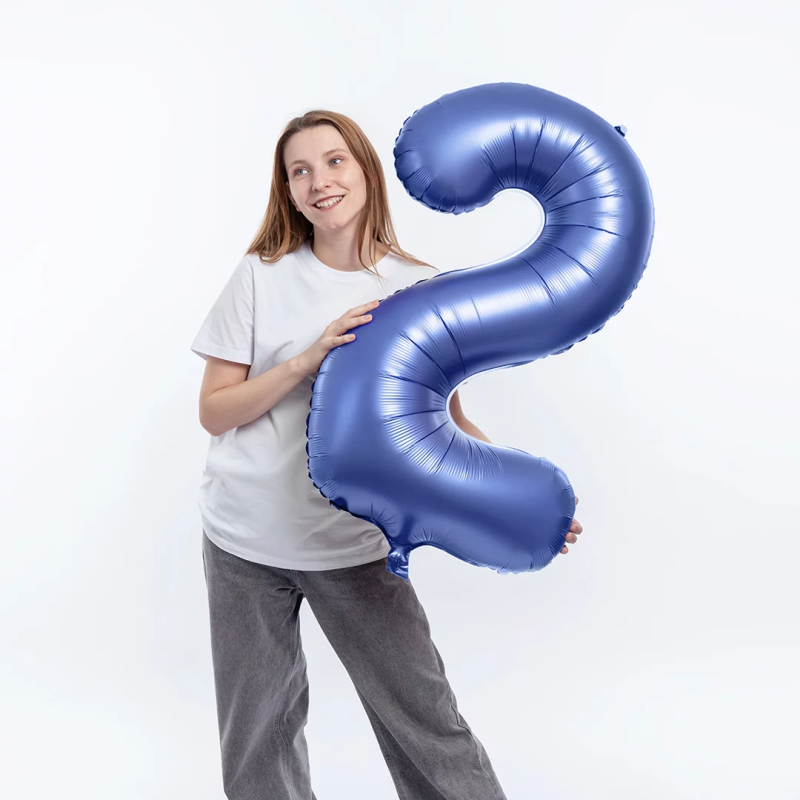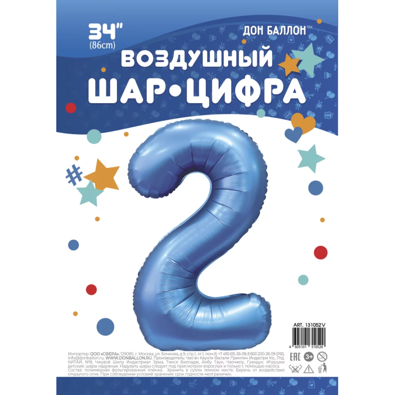 Шар (34''/86 см) Цифра, 2, Синий, Сатин, 1 шт. в уп., 131052V