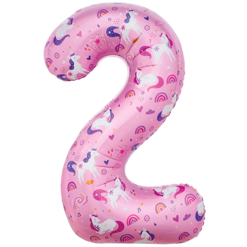 Шар (34''/86 см) Цифра, 2 Волшебные единороги, Розовый, 1 шт. в уп., 24802