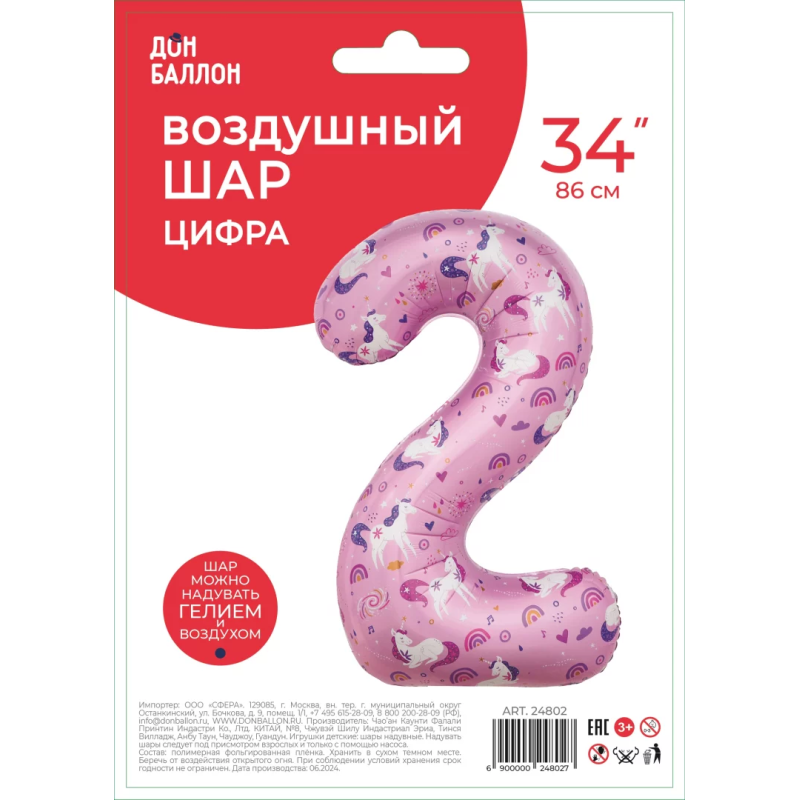 | Линейка | Falali Шар (34''/86 см) Цифра, Волшебные единороги |