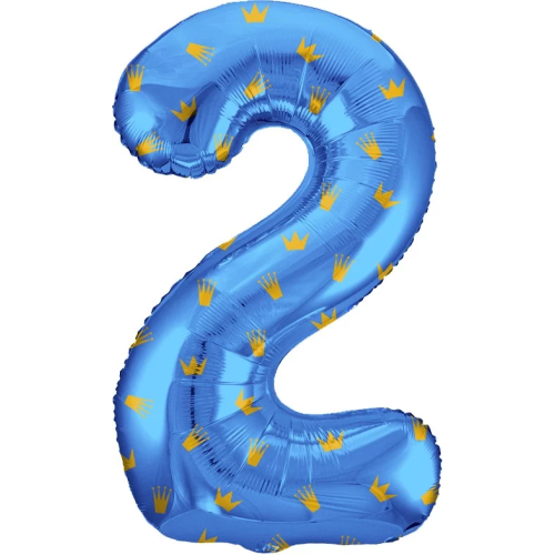 Шар (34''/86 см) Цифра, 2 Золотые короны, Голубой, 1 шт. в уп., 131112