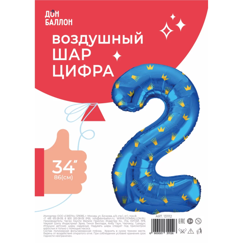 | Линейка | Falali Шар (34''/86 см) Цифра, Золотые короны, Голубой |