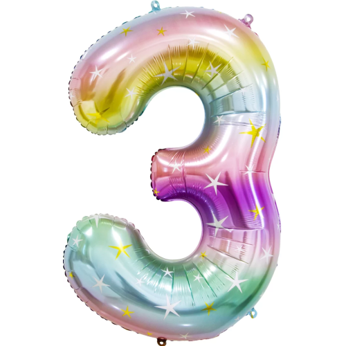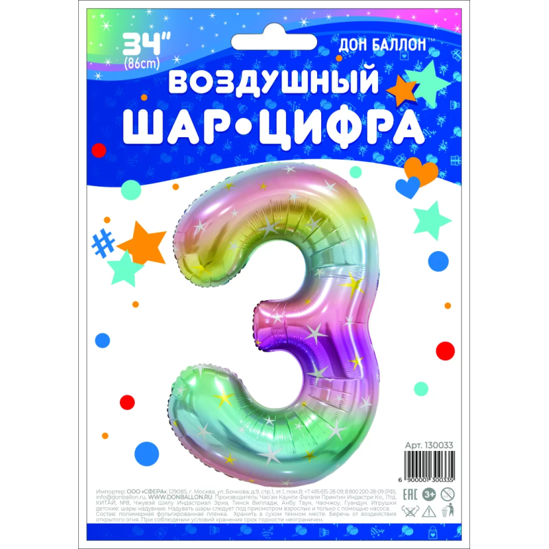 Шар (34''/86 см) Цифра, 3 Радужные искры, Градиент, 1 шт. в уп., 130033