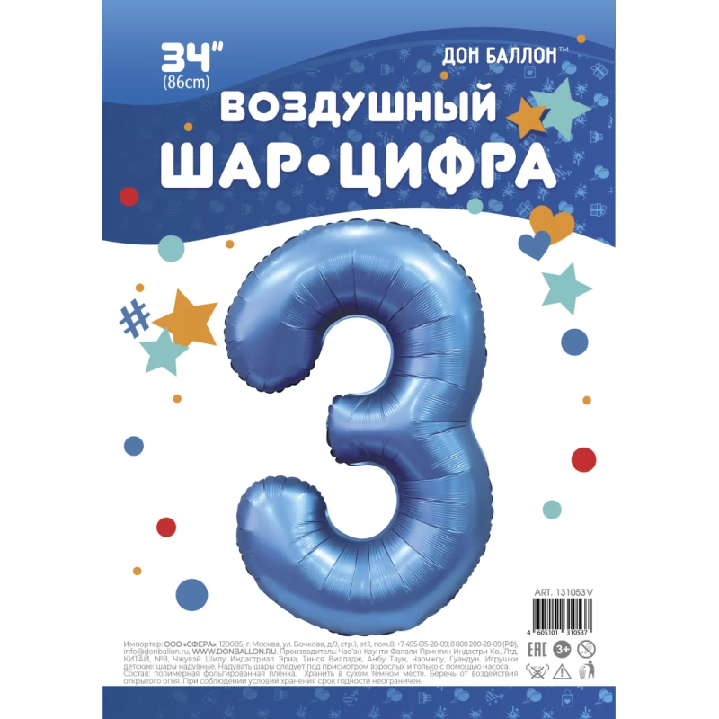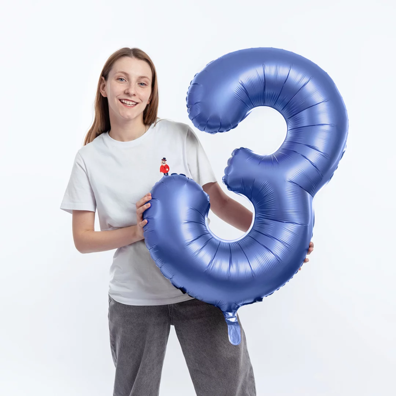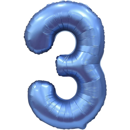 Шар (34''/86 см) Цифра, 3, Синий, Сатин, 1 шт. в уп., 131053V