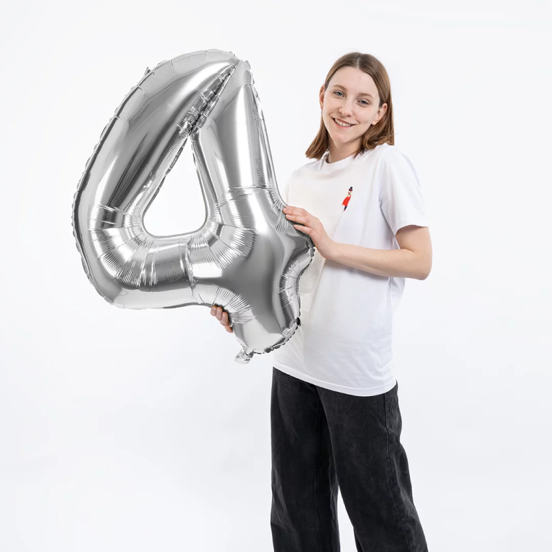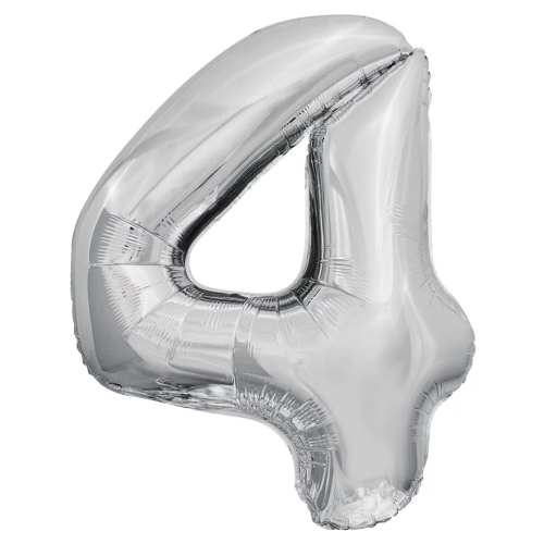Шар (34''/86 см) Цифра, 4 ЭКО, Серебро, 1 шт. в уп., 21544