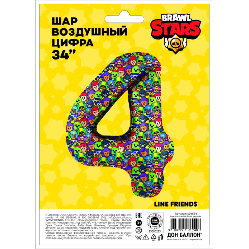 Шар (34''/86 см) Цифра, 4 Game Party, 1 шт. в уп., 501554
