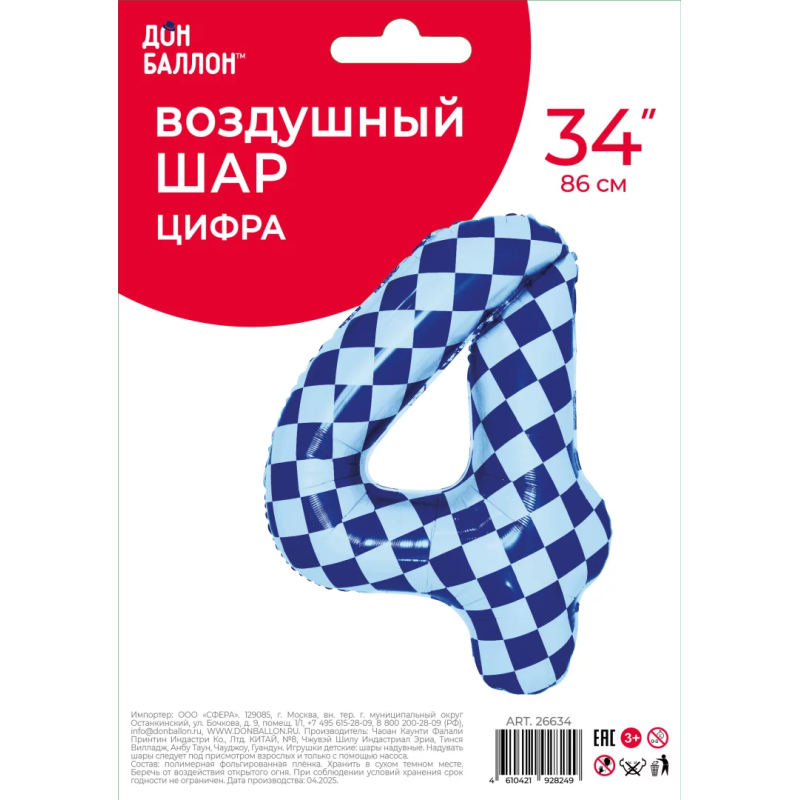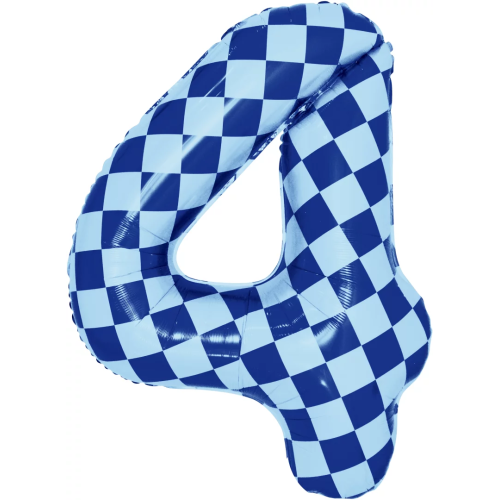 Шар (34''/86 см) Цифра, 4 Клеточки, Голубой/Синий, 1 шт. в уп., 26634
