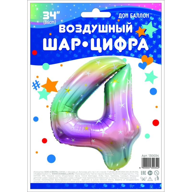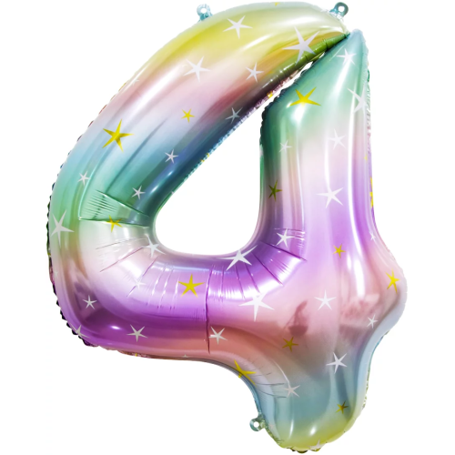 Шар (34''/86 см) Цифра, 4 Радужные искры, Градиент, 1 шт. в уп., 130034