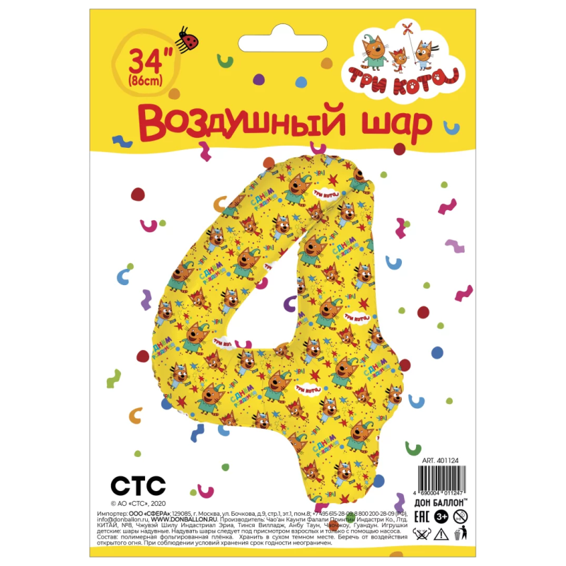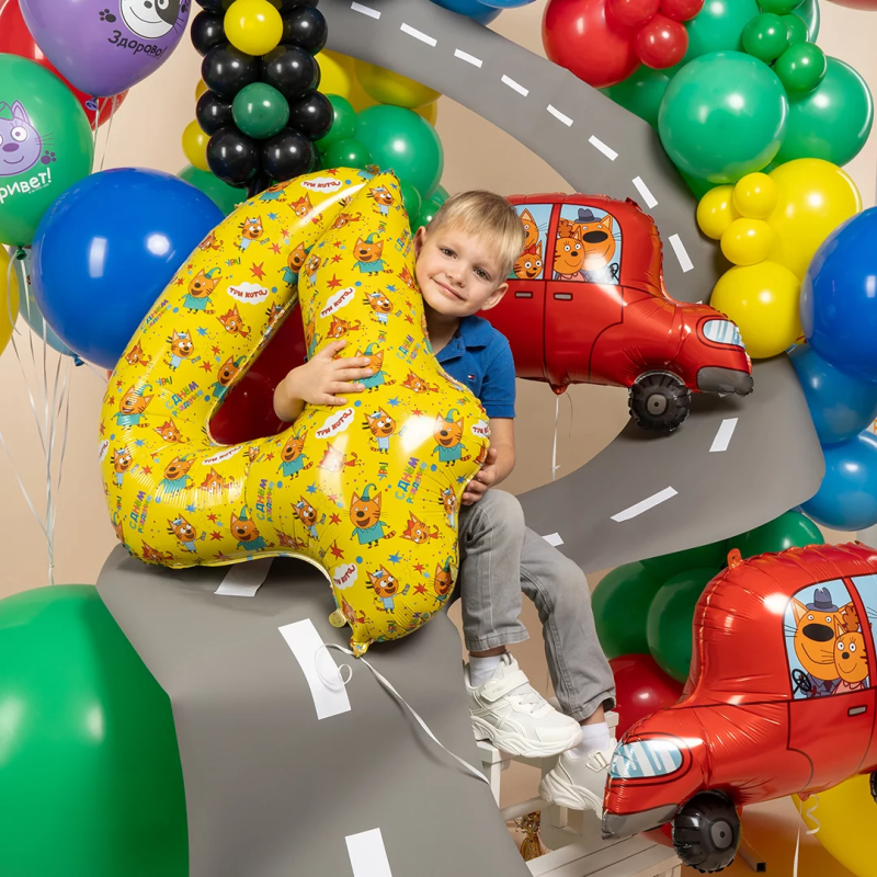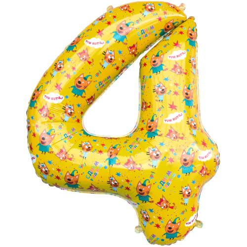 Шар (34''/86 см) Цифра, 4 Три Кота, Желтый, 1 шт. в уп., 401124