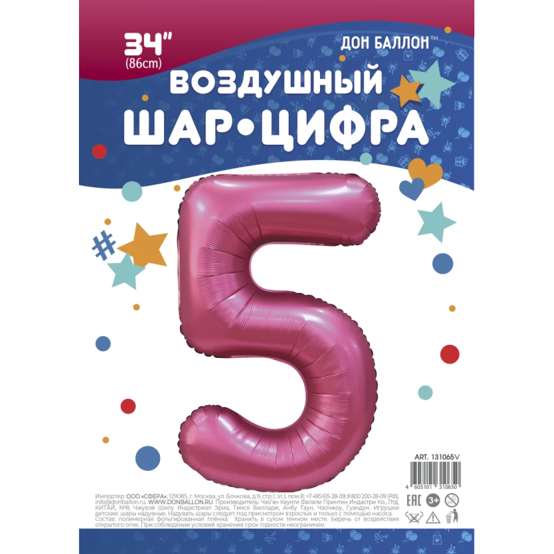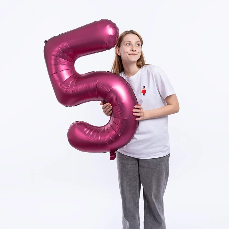 Шар (34''/86 см) Цифра, 5, Бордовый, Сатин, 1 шт. в уп., 131065V