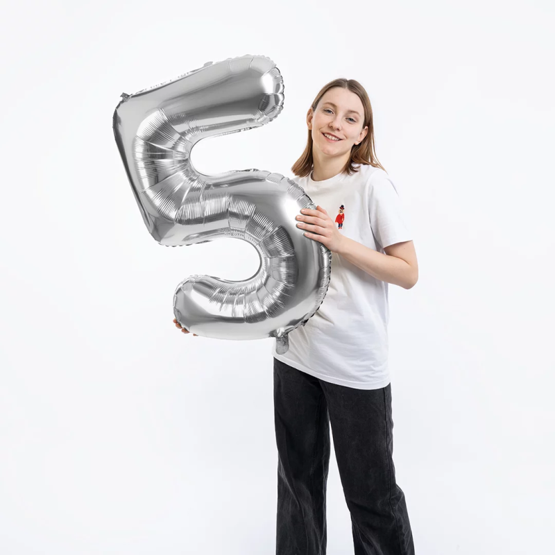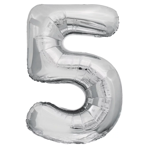 Шар (34''/86 см) Цифра, 5 ЭКО, Серебро, 1 шт. в уп., 21545