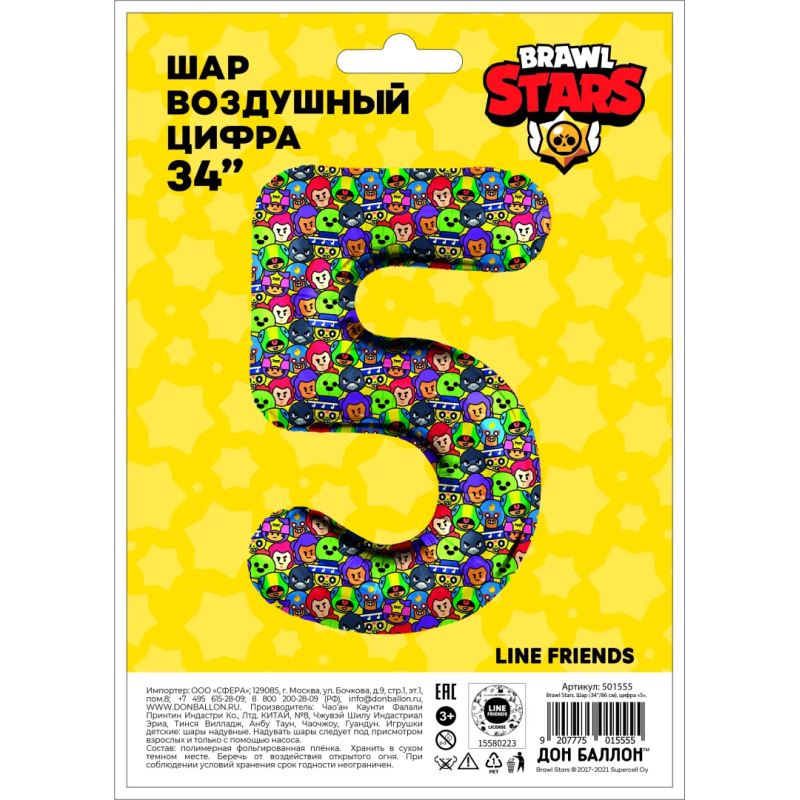 Шар (34''/86 см) Цифра, 5 Game Party, 1 шт. в уп., 501555