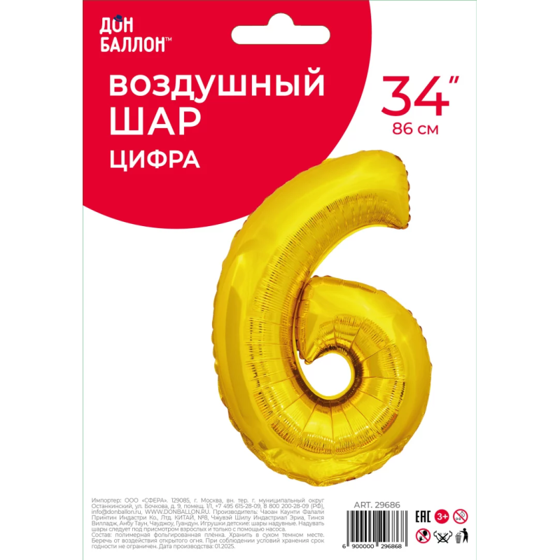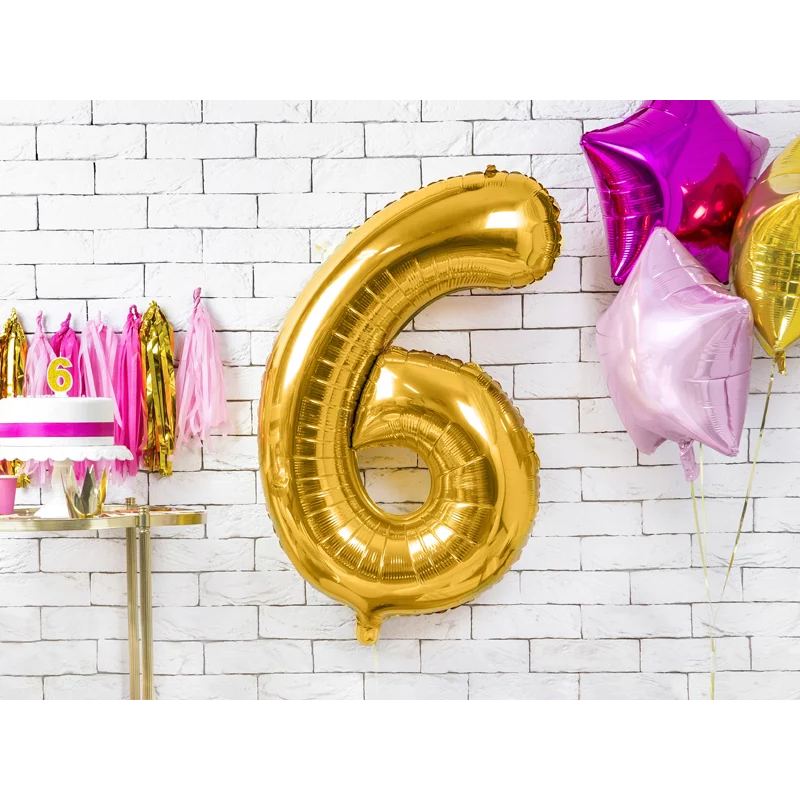 Шар (34''/86 см) Цифра, 6 ЭКО, Золото, 1 шт. в уп., 29686