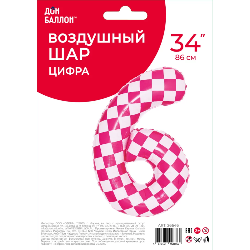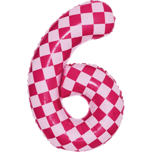 Шар (34''/86 см) Цифра, 6 Клеточки, Розовый/Фуше, 1 шт. в уп., 26646