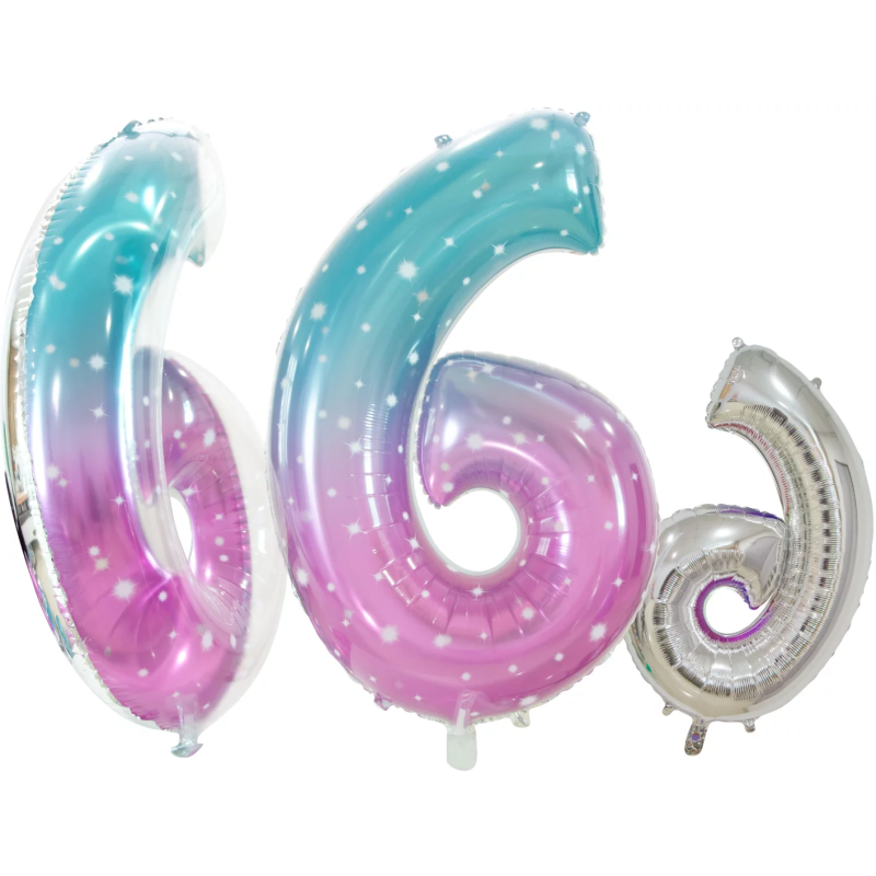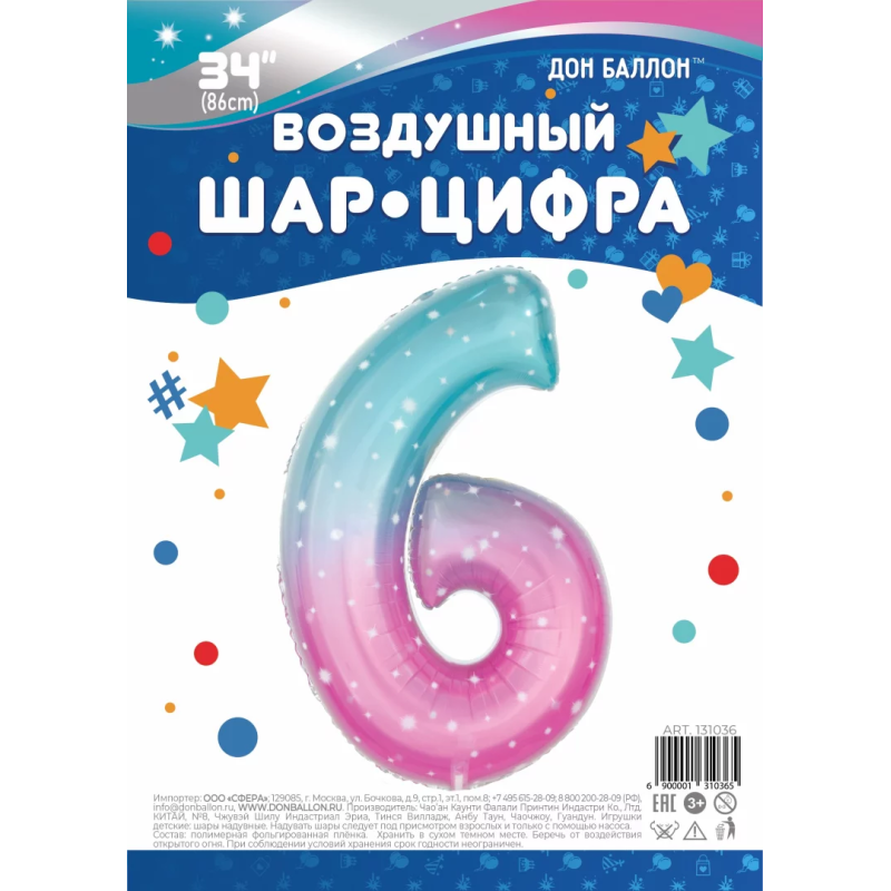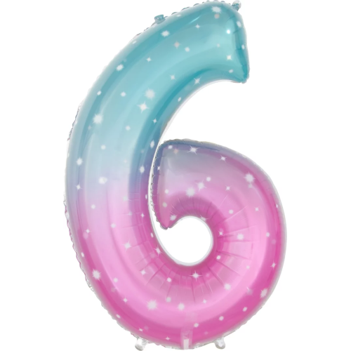 Шар (34''/86 см) Цифра, 6 Нежные искры, Розовый, Градиент, 1 шт. в уп., 131036