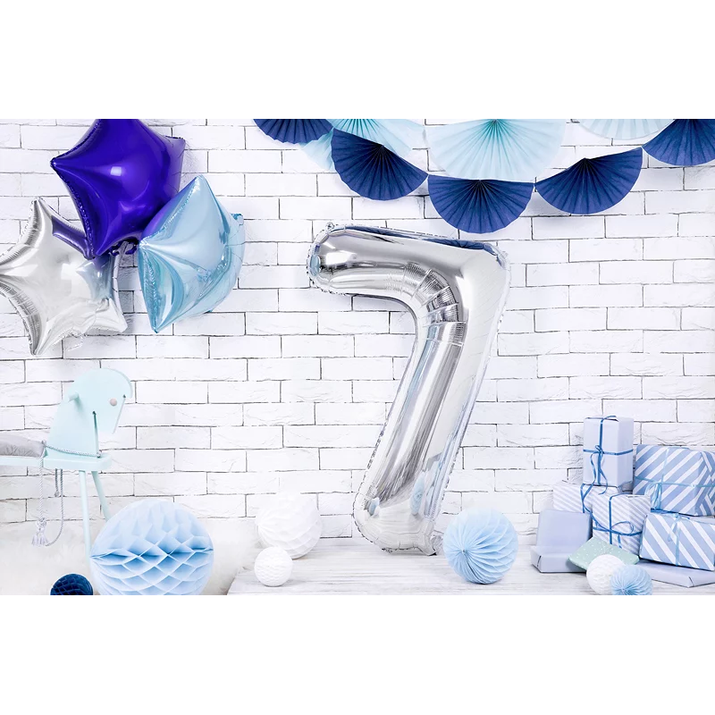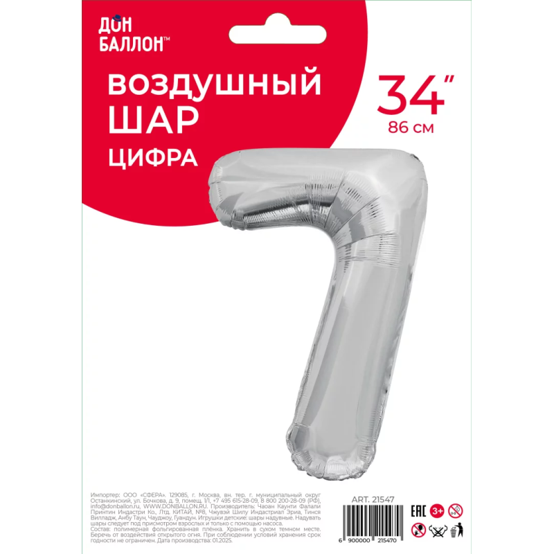 Шар (34''/86 см) Цифра, 7 ЭКО, Серебро, 1 шт. в уп., 21547