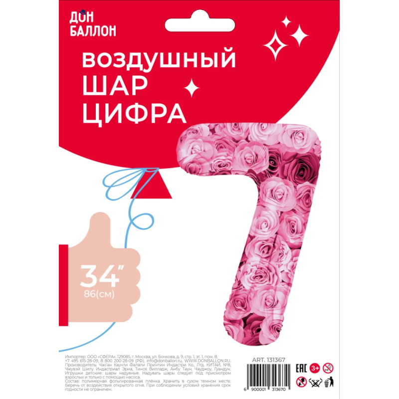 Шар (34''/86 см) Цифра, 7 Симфония роз, Фуше, 1 шт. в уп., 131367