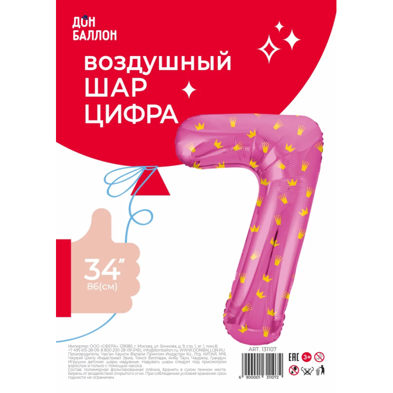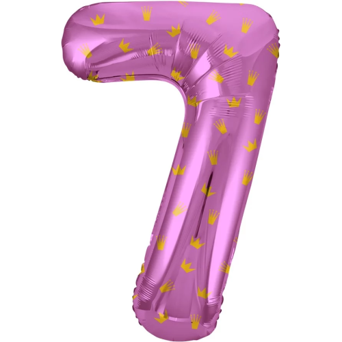 Шар (34''/86 см) Цифра, 7 Золотые короны, Розовый, 1 шт. в уп., 131107