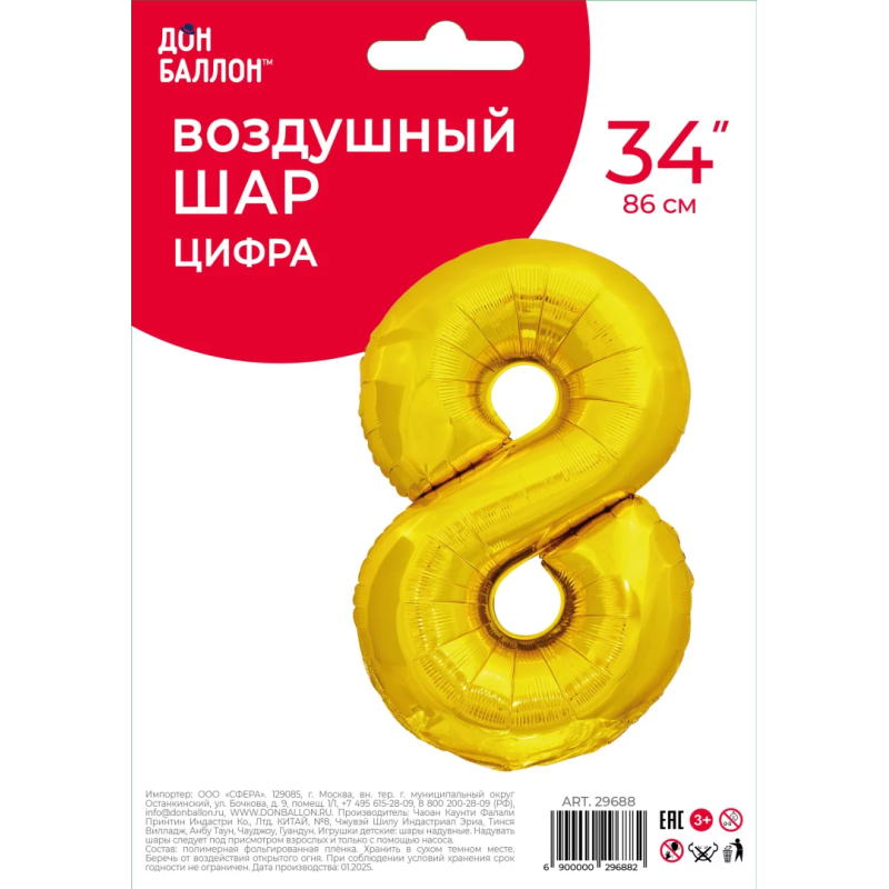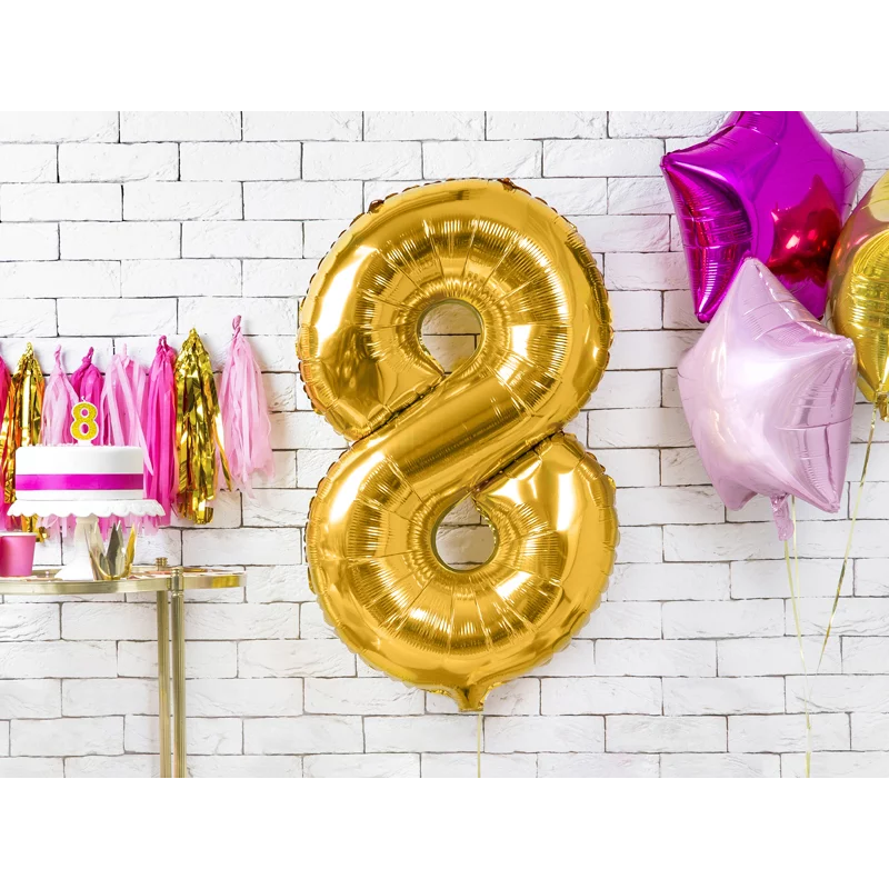 Шар (34''/86 см) Цифра, 8 ЭКО, Золото, 1 шт. в уп., 29688