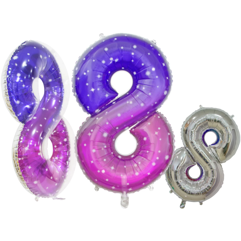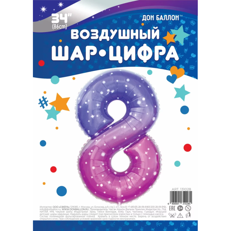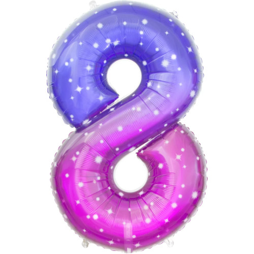 Шар (34''/86 см) Цифра, 8 Сияющий космос, Сиреневый, Градиент, 1 шт. в уп., 131028