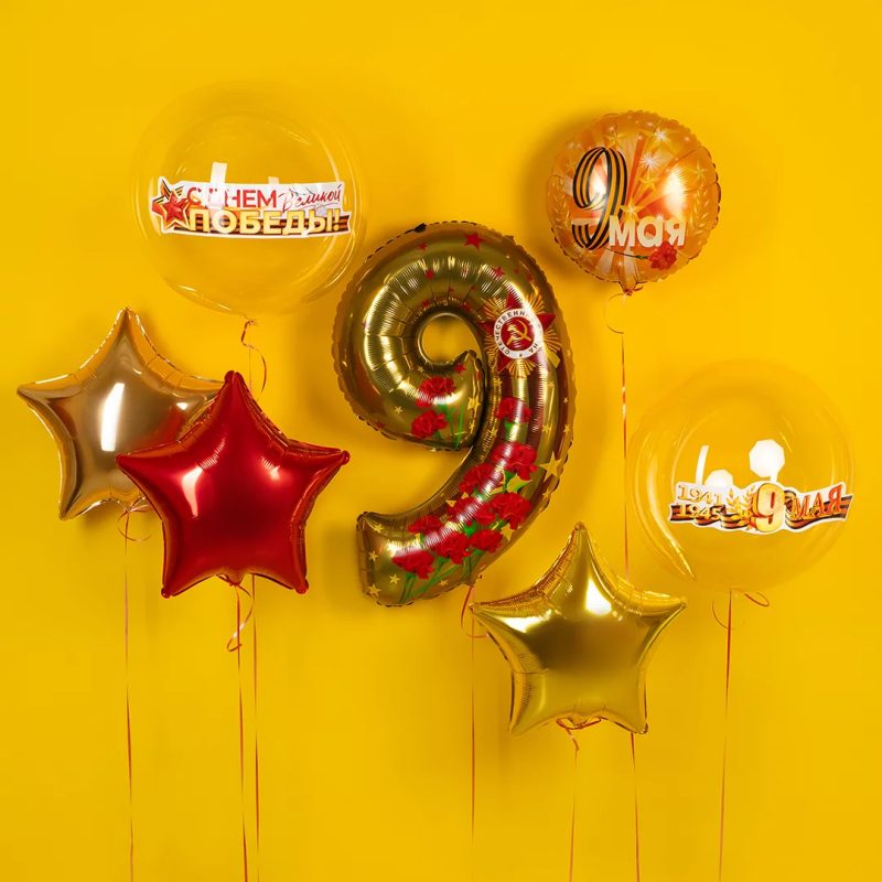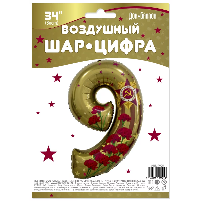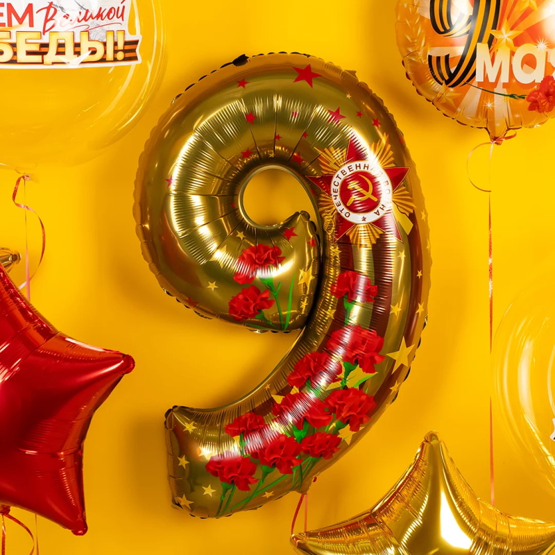 Шар (34''/86 см) Цифра, 9 Мая, День Победы, Золото, 1 шт. в уп., R905