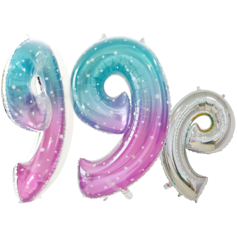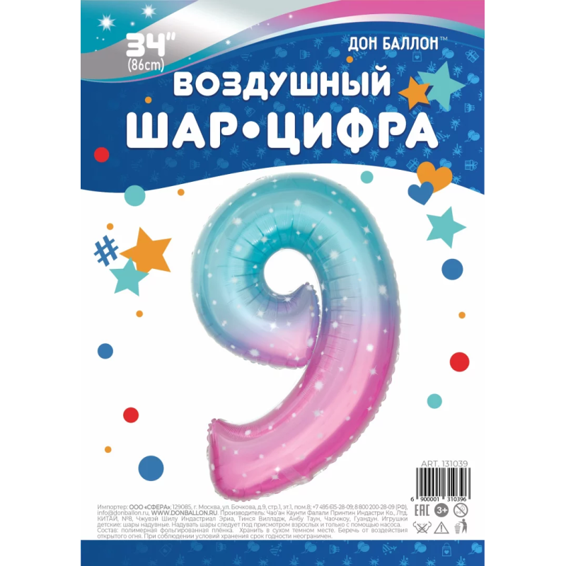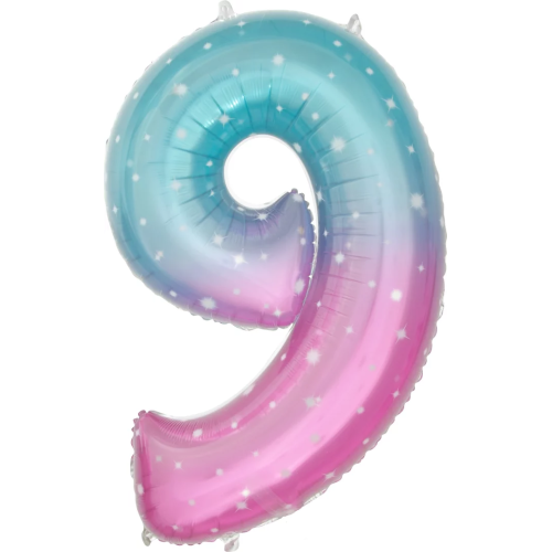 Шар (34''/86 см) Цифра, 9 Нежные искры, Розовый, Градиент, 1 шт. в уп., 131039