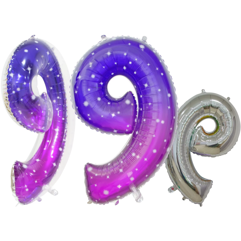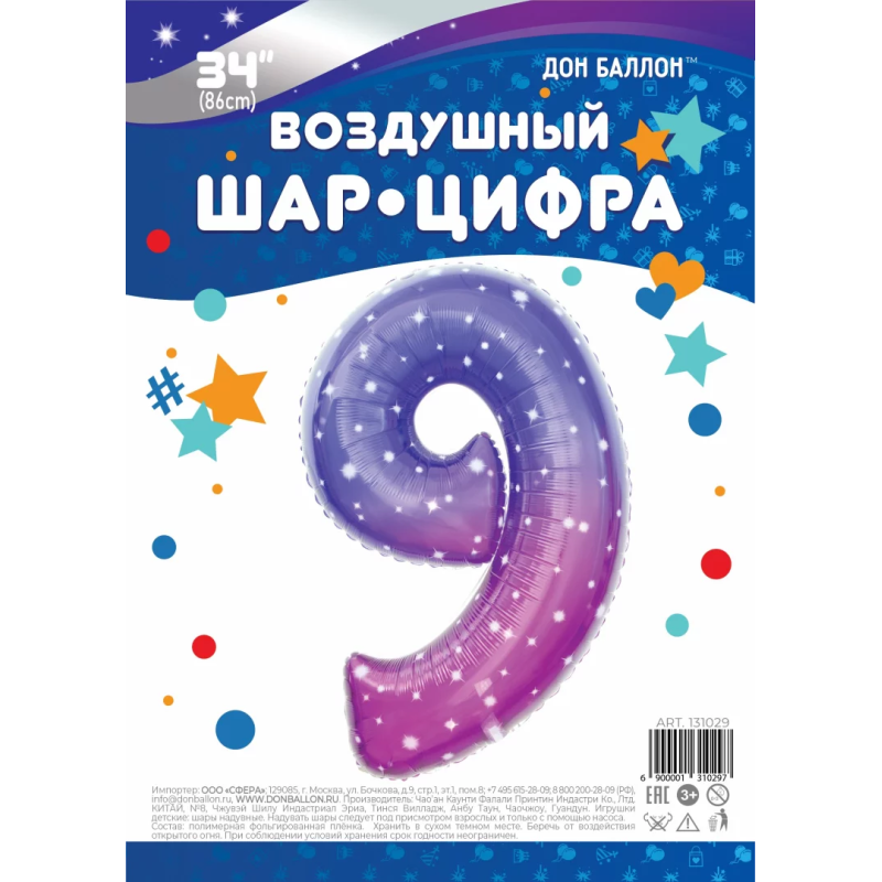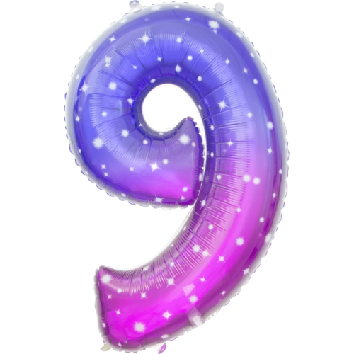 Шар (34''/86 см) Цифра, 9 Сияющий космос, Сиреневый, Градиент, 1 шт. в уп., 131029