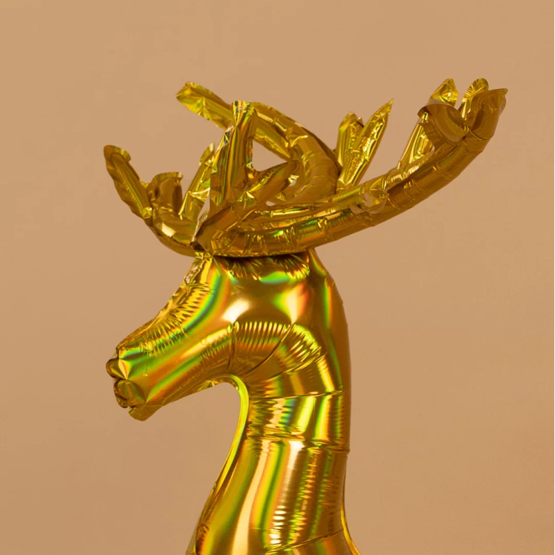Шар (35''/89 см) Фигура 3D, Олень, Золото, Голография, 1 шт. в уп., 24904