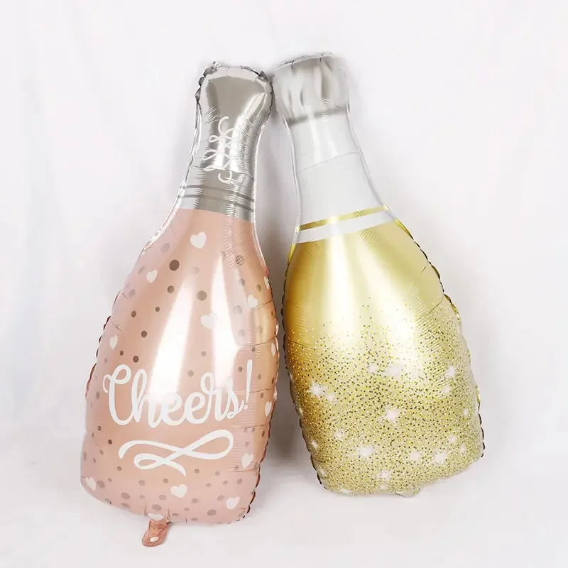 Шар (35''/89 см) Фигура, Бутылка, Шампанское, Конфетти сердец, Розовое Золото, 1 шт., 15533