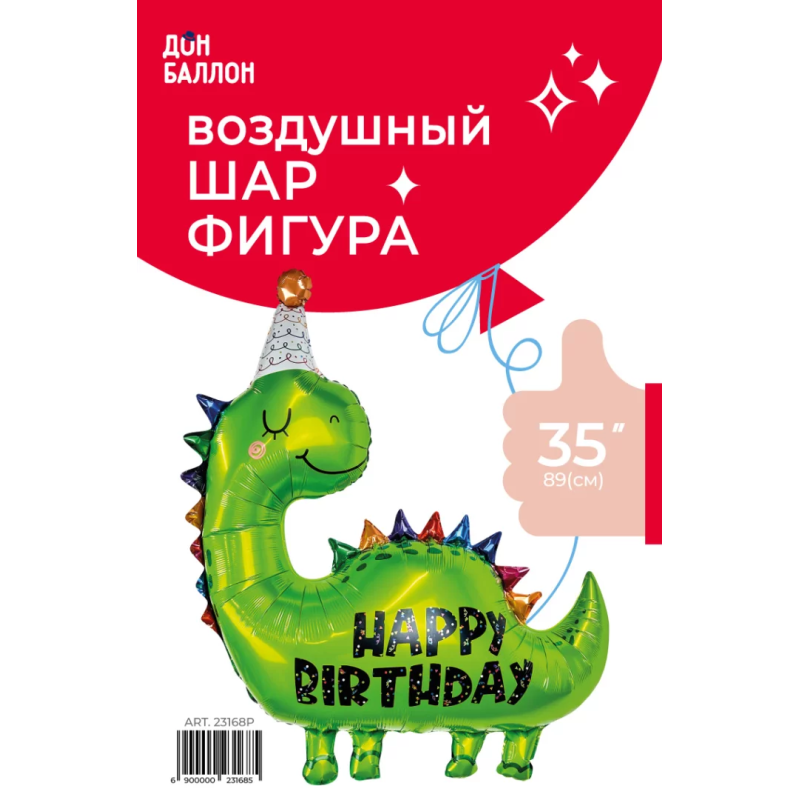 Шар (35''/89 см) Фигура, Динозаврик в колпачке, 1 шт. в уп., 23168P