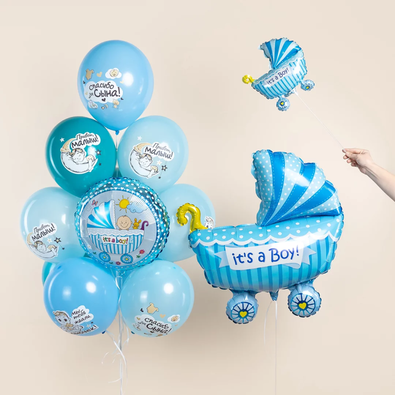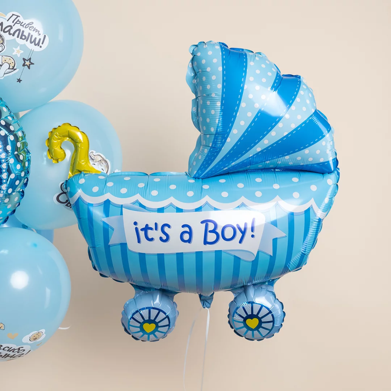 Шар (35''/89 см) Фигура, Коляска для мальчика, Голубой, 1 шт., 901740
